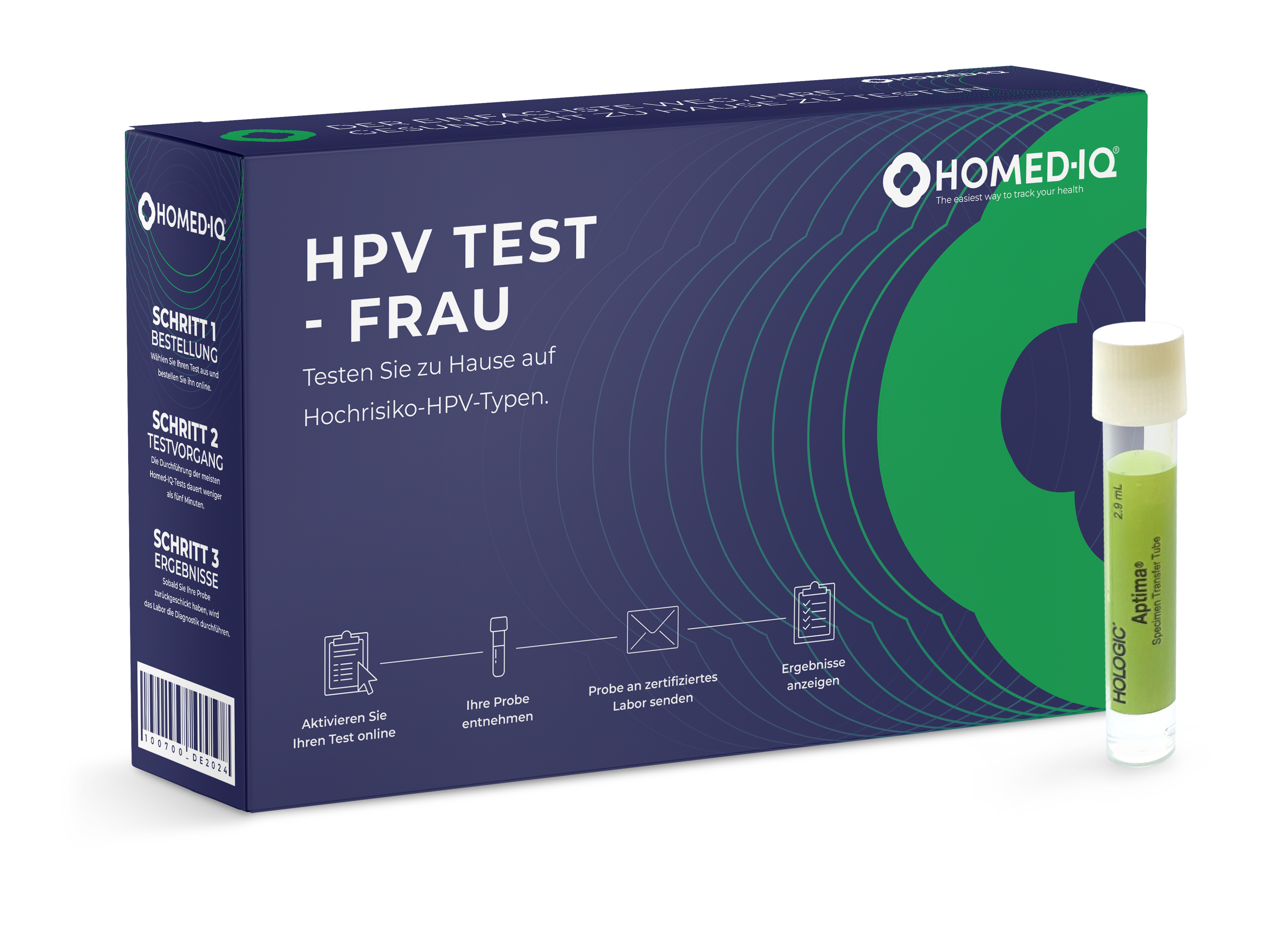 Der HPV-Test von Homed-IQ ist ein Screening-Test zur Früherkennung von Gebärmutterhalskrebs bei Frauen. Der Test dient nicht dazu, Krebs festzustellen, sondern erkennt das Vorhandensein des humanen Papillomavirus (HPV) – des Virus, das Gebärmutterhalskrebs verursachen kann. HPV ist weltweit die häufigste sexuell übertragbare Infektion (STI). Während die meisten HPV-Infektionen von selbst abklingen, können einige im Körper verbleiben und gesundheitliche Probleme verursachen. Bestimmte HPV-Typen führen zu Warzen oder bleiben symptomlos, während Hochrisiko-HPV-Typen Veränderungen in den Zellen des Gebärmutterhalses hervorrufen können, die langfristig zu Gebärmutterhalskrebs führen. Dieser Heimtest erkennt bei Frauen Hochrisiko-HPV-Typen, die das Risiko für Gebärmutterhalskrebs erhöhen können.