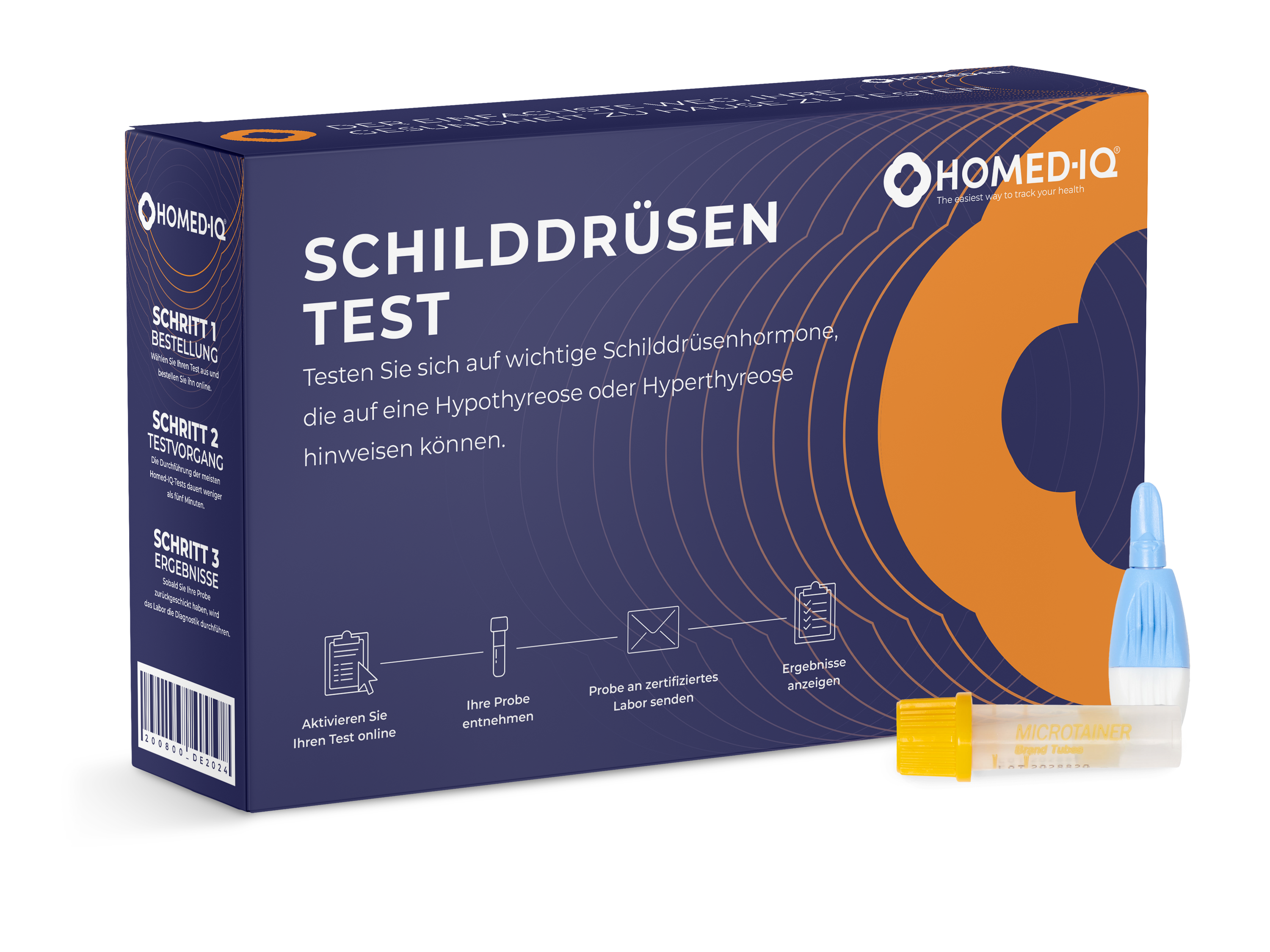 Dieser Schilddrüsentest für zu Hause misst das Schilddrüsenstimulierende Hormon (TSH) in Ihrem Blut. Die Testmethode umfasst einen Fingerstich, den Sie ganz einfach zu Hause durchführen können. Ihre Probe wird dann von einem zertifizierten Labor untersucht und Sie erhalten die Ergebnisse innerhalb weniger Tage. Einfacher geht es nicht!