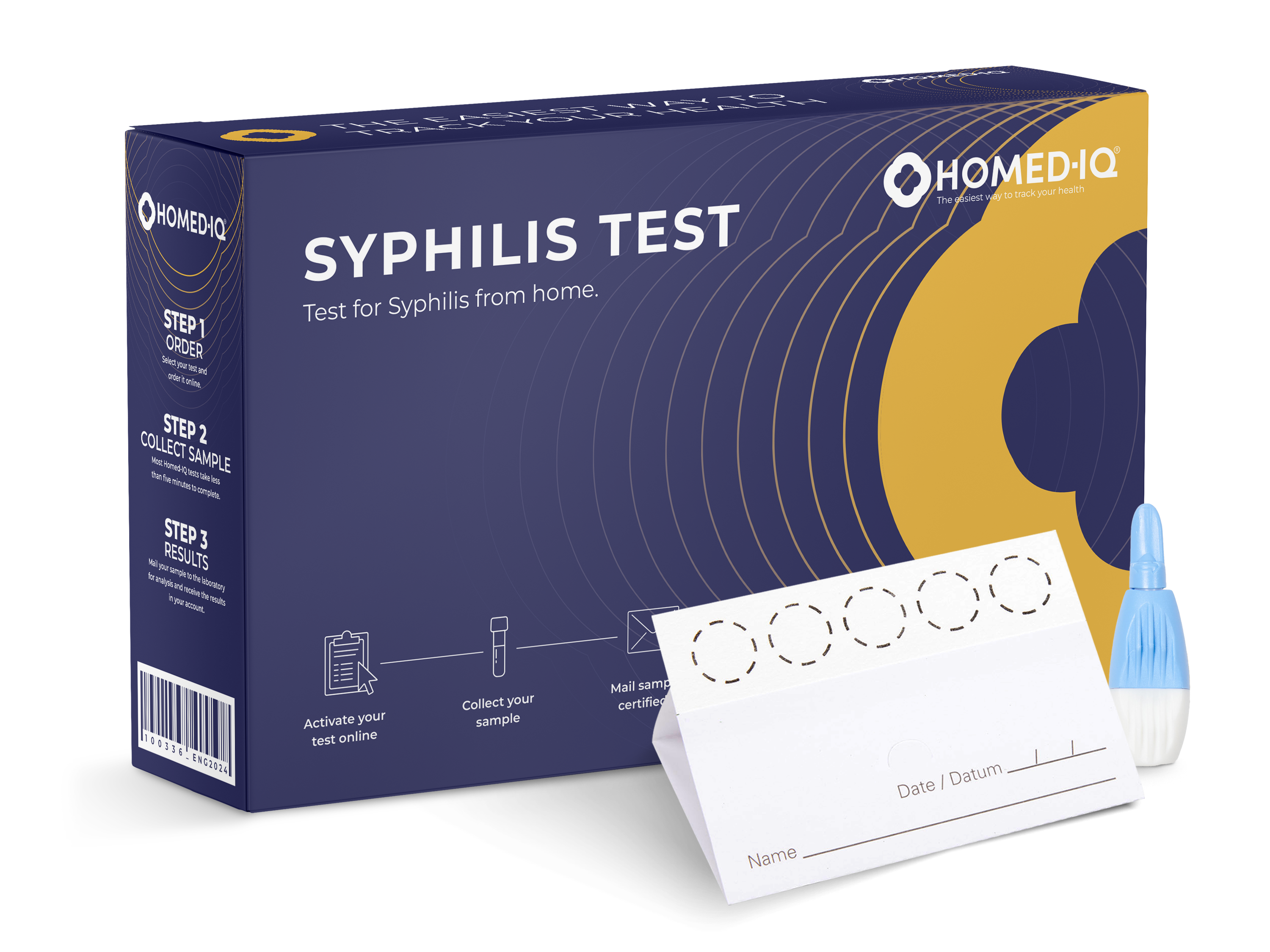 Mit dem Syphilis-Test von Homed-IQ erhalten Sie mehr Informationen über Ihre sexuelle Gesundheit – ganz ohne den Besuch bei einem Hausarzt oder in einer Klinik. Dieser Test prüft auf Syphilis und kann in wenigen Minuten bequem zu Hause durchgeführt werden. Im Gegensatz zu STI-Tests in einer Klinik ist lediglich eine kleine Menge Blut erforderlich, die Sie mit einem Fingerstich selbst entnehmen.