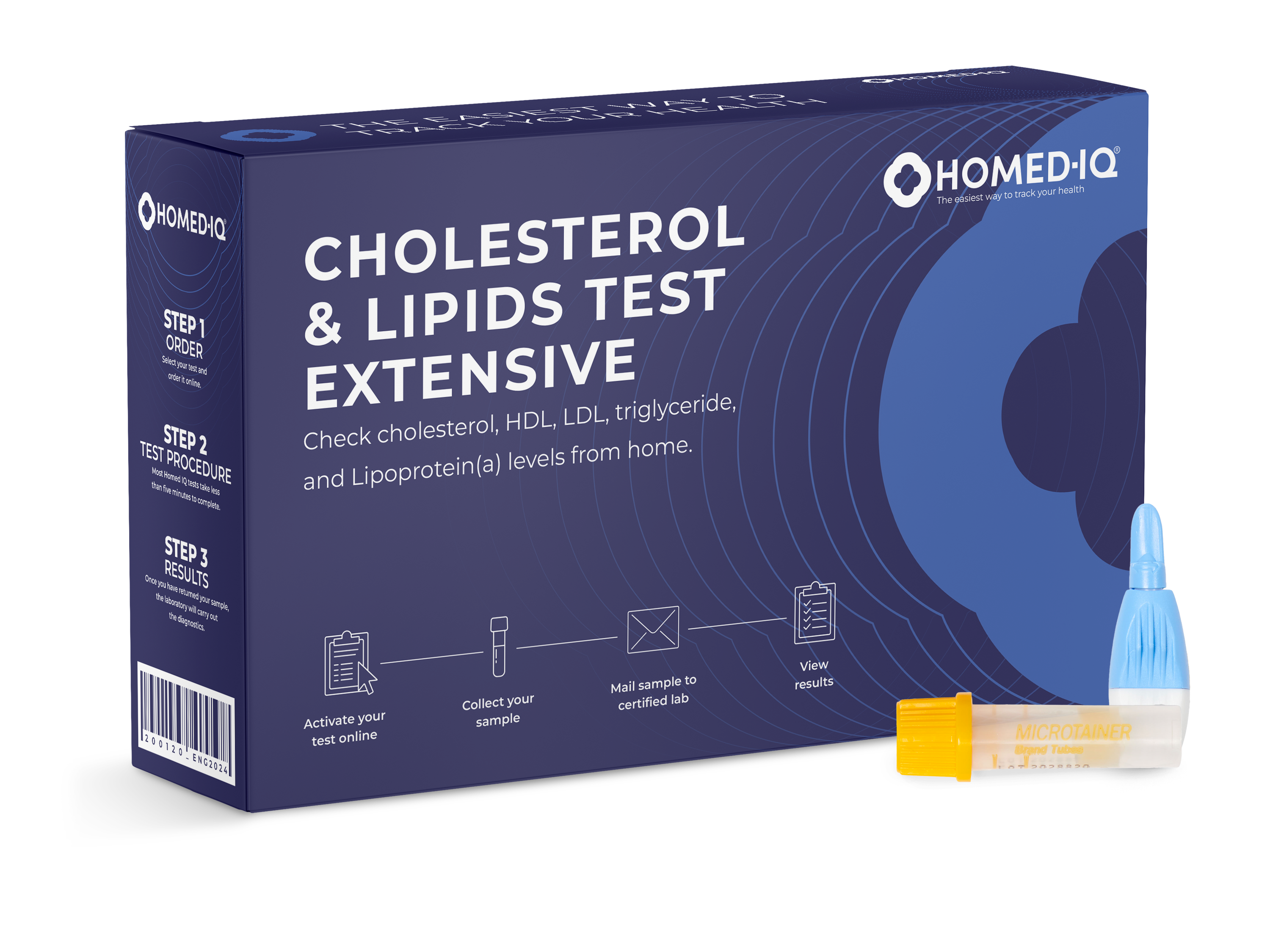 Dieser Test misst den Gesamtcholesterin-, LDL-, HDL-, Triglycerid– und Lipoprotein(a)-Spiegel in Ihrem Blut. Der Test ist ein Fingerstich-Test, den Sie ganz einfach von Zuhause aus durchführen können. Ihre Probe wird anschließend von einem zertifizierten Labor untersucht, und Sie erhalten die Ergebnisse innerhalb weniger Tage. Es könnte nicht einfacher sein! Kaufen Sie noch heute einen Cholesterin-Selbsttest und erhalten Sie sofort einen Einblick in Ihre Gesundheit.